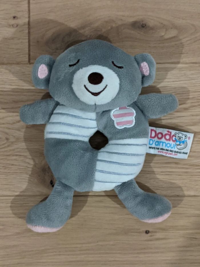 Petit hochet doudou qui ne fait pas de musique, parfait pour que bébé puisse l'attraper
