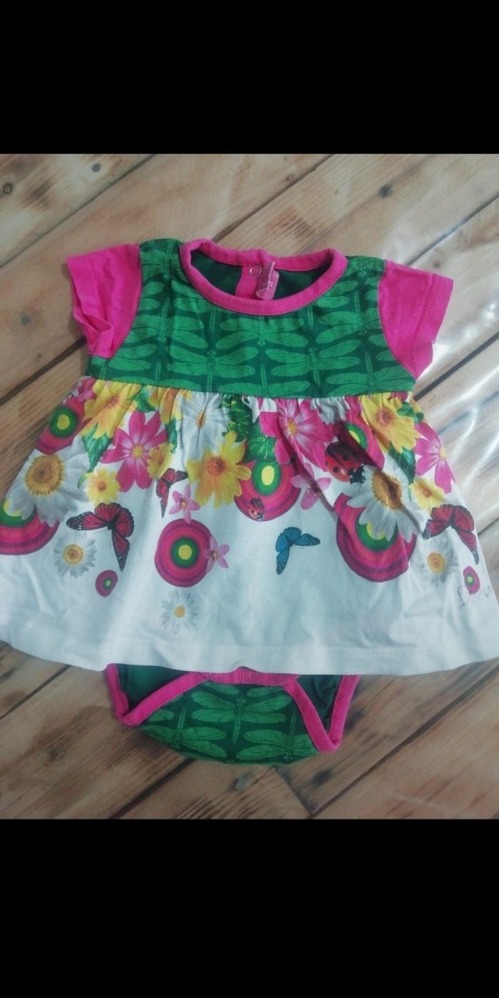 Robe avec Bodie intégré de la marque DESIGUAL taille 3 mois en bon état, petite couture faite par moi même (voir photo) qui ne se voit absolument pas.
