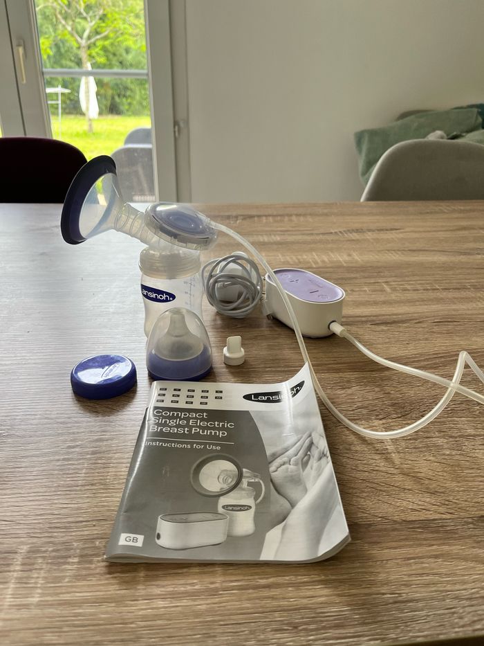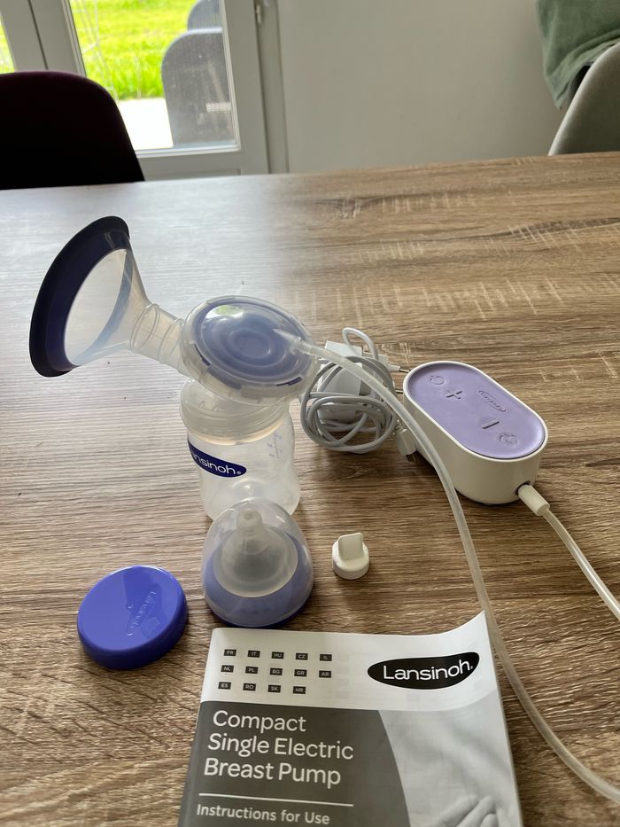 En parfait état de marche, ce tire lait lansinoh est très compact et super simple d’utilisation. il fonctionne sur secteur mais je l’ai toujours utilisé de façon nomade, branché à une batterie externe. Il a deux modes : stimulation et expression et 5 niveaux de puissance. Fourni avec notice et boîte d’origine
