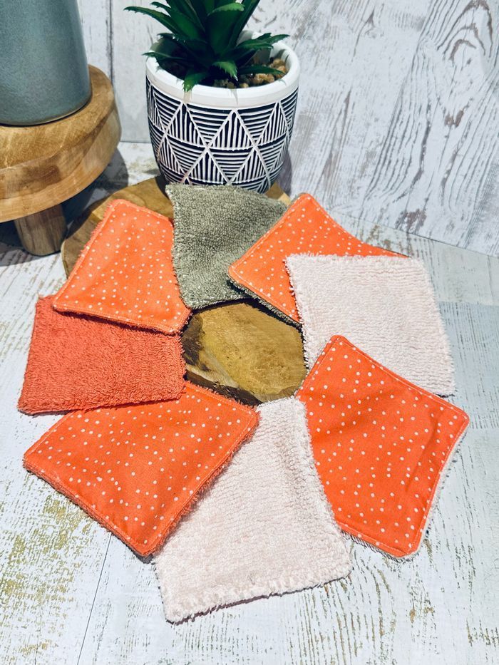 lingettes lavable et réutilisable lot de 8 taille 9x9 cm Avec un côté en éponge en coton lavable à 30° pas de sèche linge et l’essorage au minimum si possible à éviter pensez à humidifier la lingette avant utilisation plusieurs modèles au choix Envoi rapide et soigné Toutes les lingettes sur @ateliersdisalingettes possibilité de faire en plus grande quantité panier à 10€
