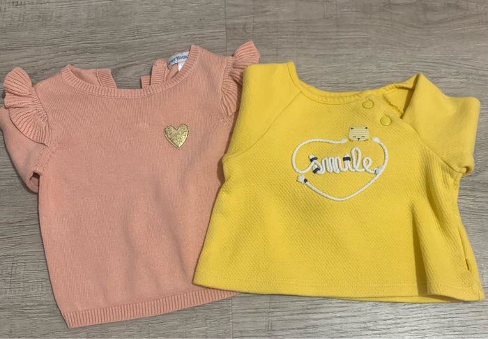 2 pulls 3 mois, le rose est un verbaudet et le jaune un Okaidi