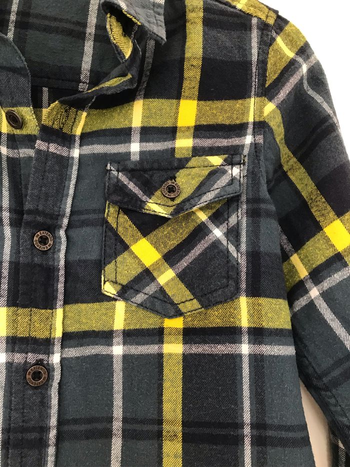 Jolie chemise mi saison style bûcheron jaune et bleue. Taille 6 ans. Portée 1 fois