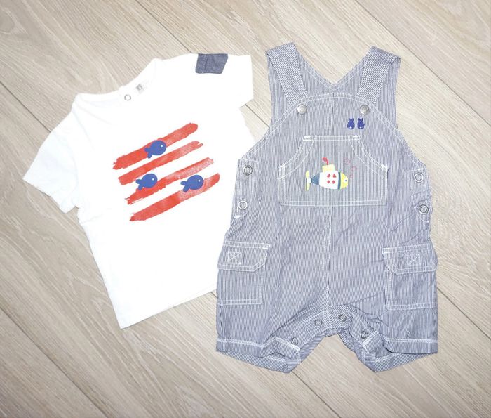 Salopette courte et tee-shirt assorti Taille 3 mois #3moisgarçongalimel