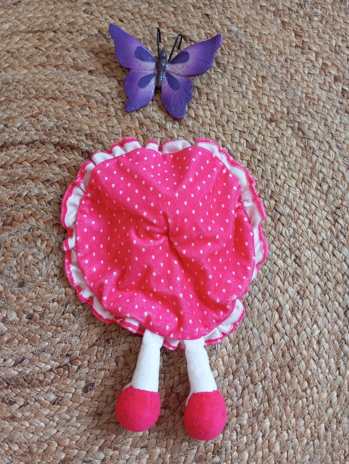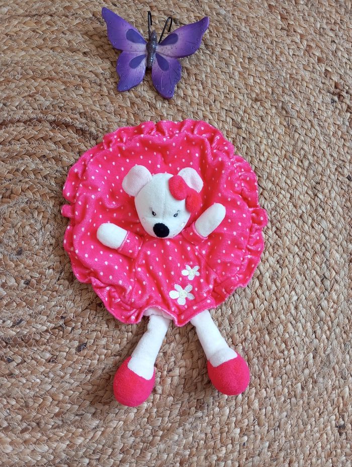 Kimbaloo la halle Doudou rond souris Rose Blanc à pois Broderies fleurs Noeud ‼️ Étiquette de composition absente #douceur_kimbaloolahalle C9