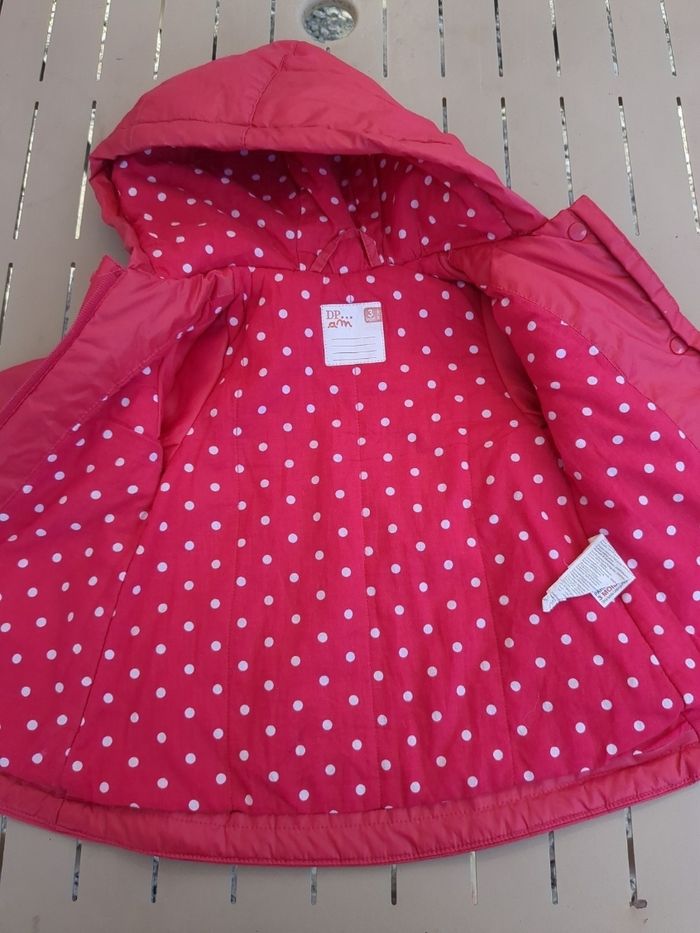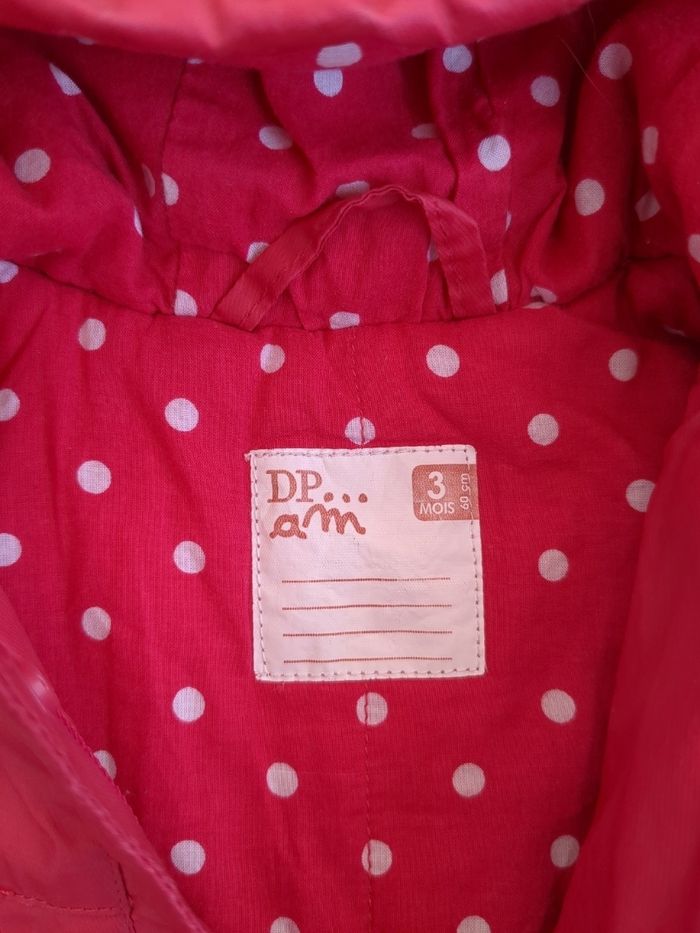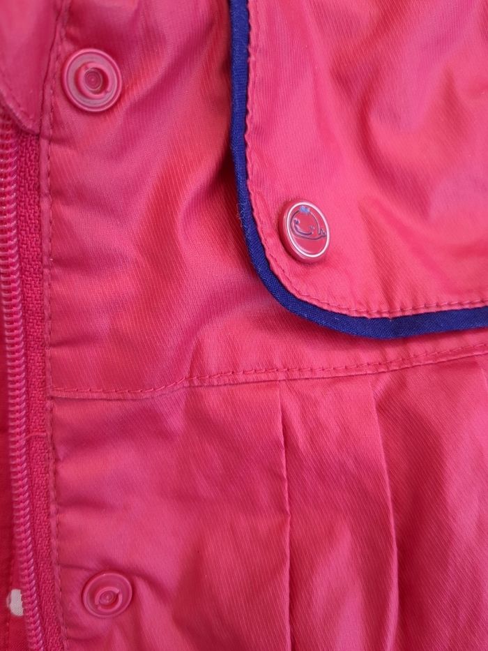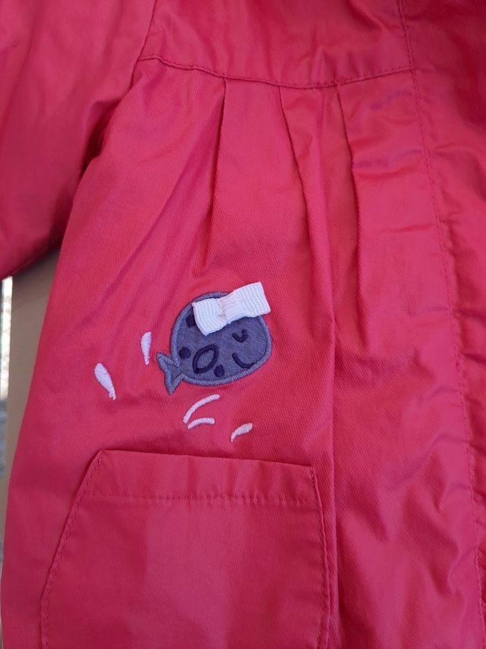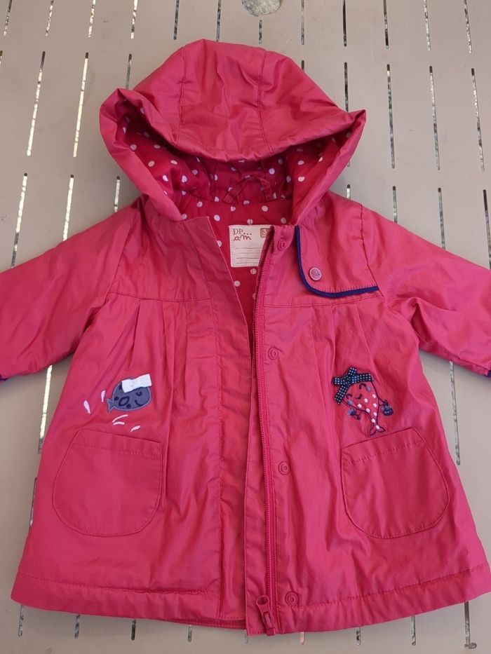 3 mois. Petite veste doublée et imperméable. Dpam. Très bon état. Thème baleine. Rose et pois blanc pour l'intérieur. Petites poches devant. Très très mignonne.