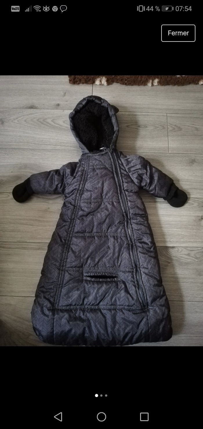 Combipilote Noire taille 0 1 mois Très bon état Avec passage entre les jambes pour attacher dans la poussette ou siège auto.