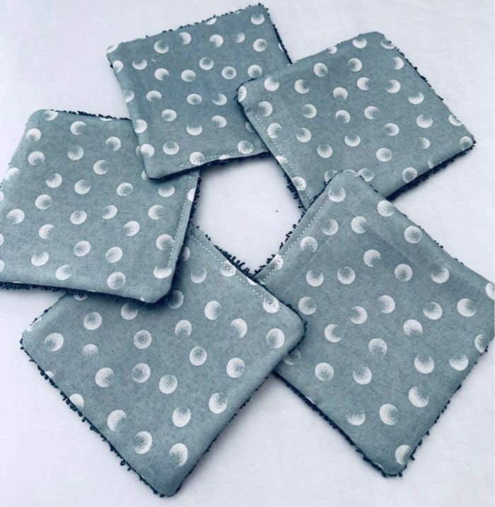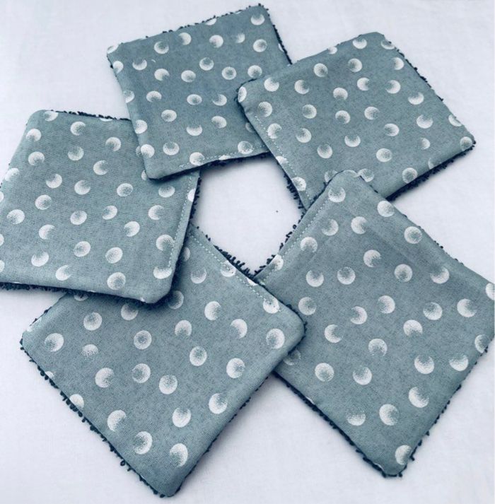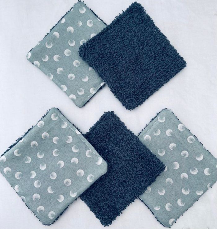 lingettes lavable et réutilisable lot de 5 taille 9x9 cm Avec un côté en éponge en coton lavable à 30° pas de sèche linge et l’essorage au minimum si possible à éviter pensez à humidifier la lingette avant utilisation plusieurs modèles au choix Envoi rapide et soigné Toutes les lingettes sur @ateliersdisalingettes possibilité de faire en plus grande quantité panier à 10€