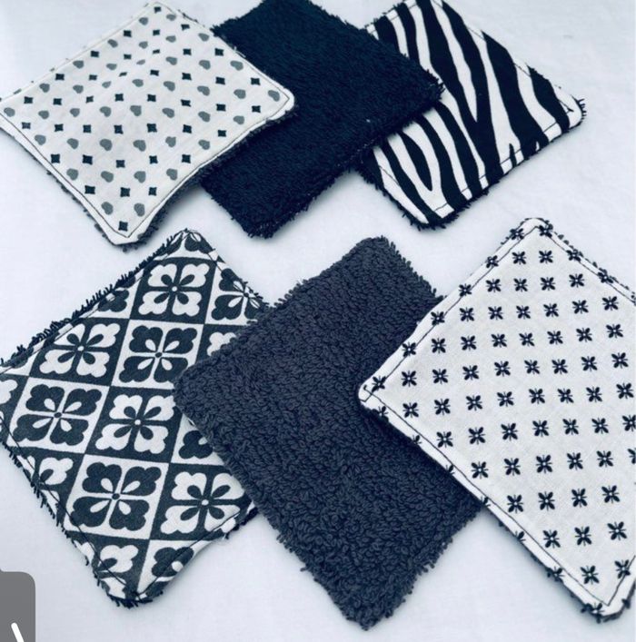 lingettes lavable et réutilisable lot de 6 taille 9x9 cm Avec un côté en éponge en coton lavable à 30° pas de sèche linge et l’essorage au minimum si possible à éviter pensez à humidifier la lingette avant utilisation plusieurs modèles au choix Envoi rapide et soigné Toutes les lingettes sur @ateliersdisalingettes possibilité de faire en plus grande quantité panier à 10€