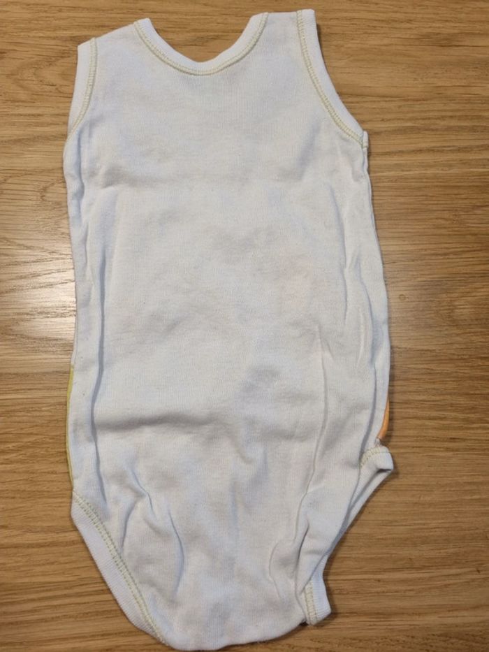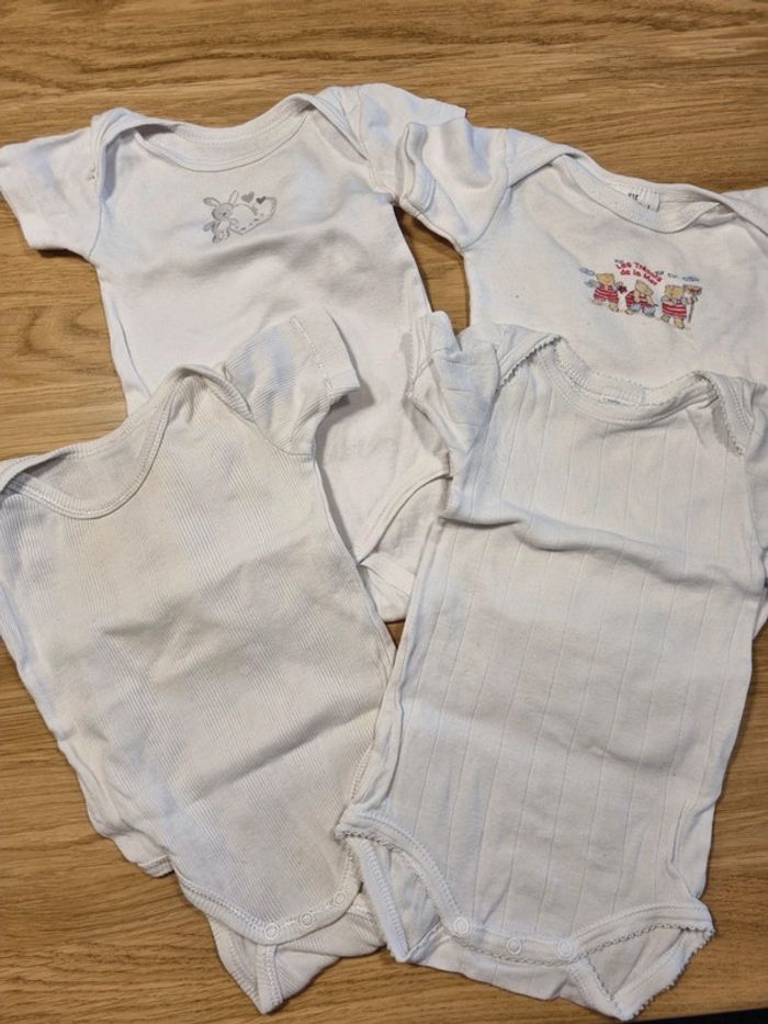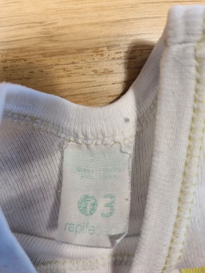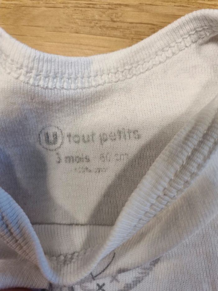 Lot de 7 bodies été 3 mois, 6 manches courtes et un sans manches débardeur Marques U, Kimbaloo et autres 1 des 2 bodies marque U est tâché au niveau du col, cf photo Le body sans manches a une petite tâche jaune sur le côté du dessin En bon état, peuvent encore être portés