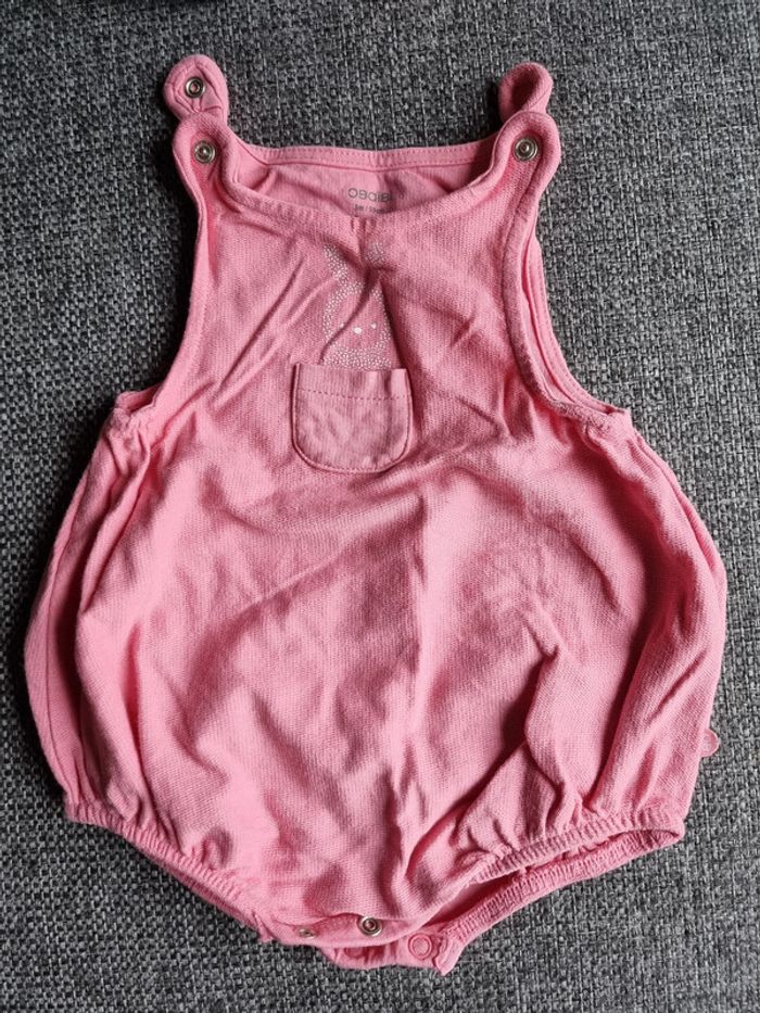 Combinaison courte / Barboteuse Rose maille éponge motif Lapin qui sort de la poche en très bon état, peu porté. Seule une maille est légèrement effilochée par le lavage