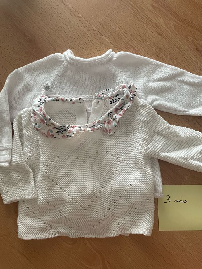 Lot de 2 pulls / gilet en coton 1 marque Gemo col fleurie L’autre sans marque En très bon état taille 3 mois