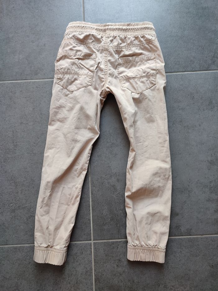 Pantalon en toile, beige Lien de serrage a la ceinture Taille élastique en haut et au bas des jambes