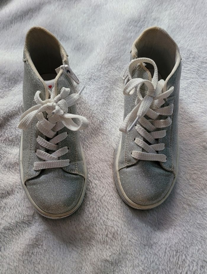 Baskets argentées pailletées - photo numéro 1