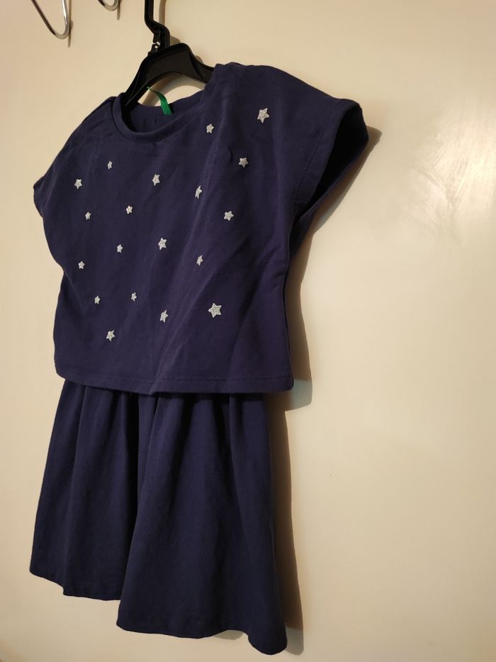 Belle robe 2 en un Tee-shirt intégré Motifs étoiles brillante Coloris bleu marine Taille 3/4 ans