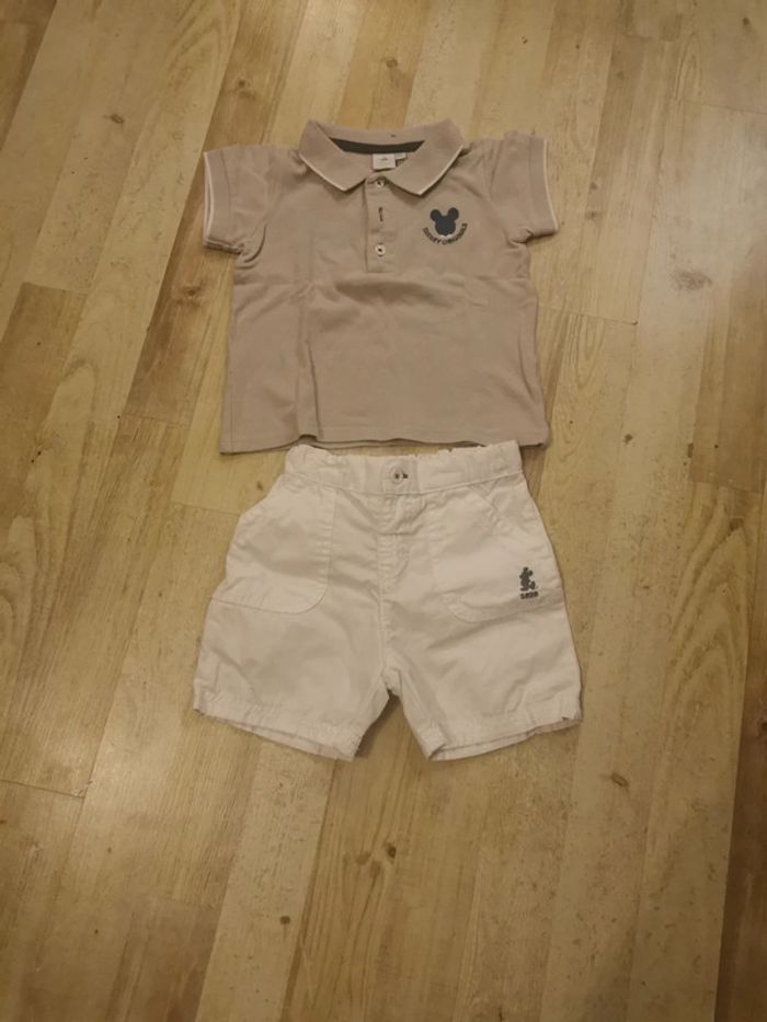 ensemble composé d'un polo et d'un t-shirt Mickey très bon état a part une légère trace sur l'arrière du short blanc. a peine visible. J'ai du zoomer 😬 ( voir photo) #garçon24moisckk91