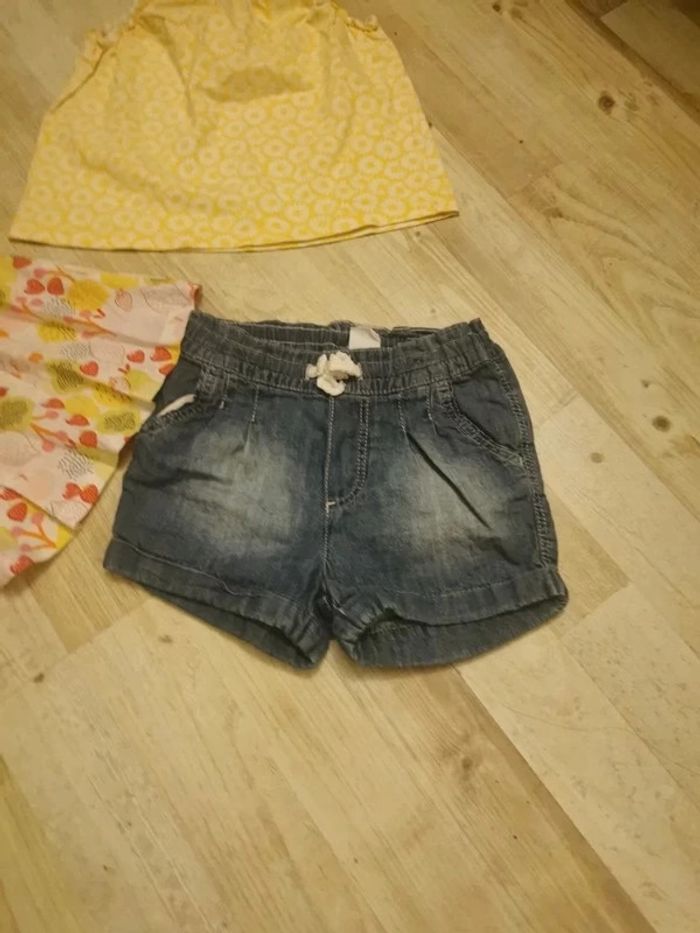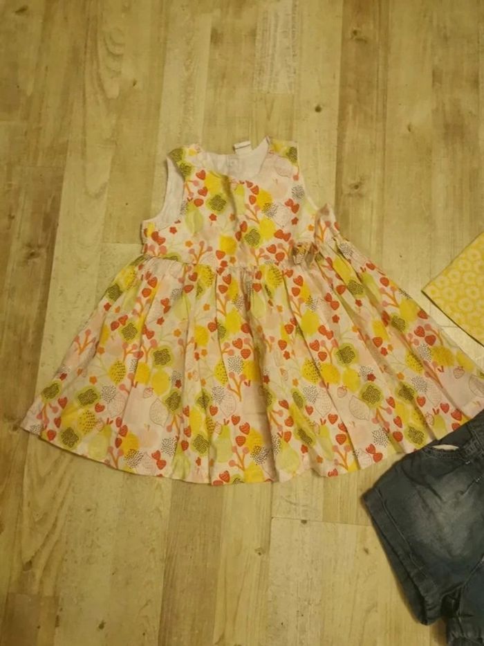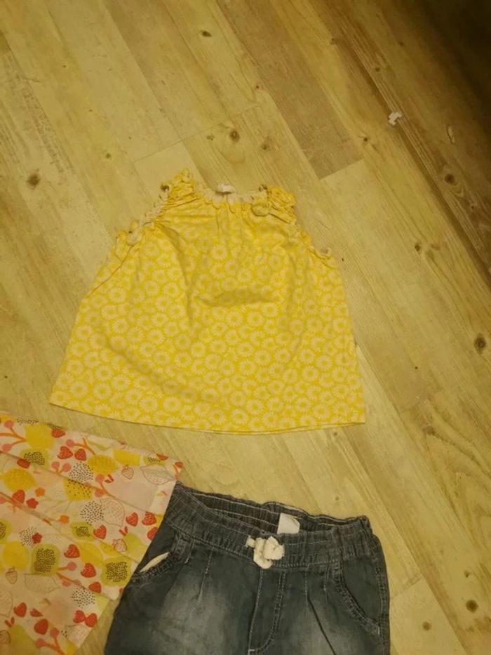 Lot composé d'une robe à motifs, d'un short en jean bleu et d'un t-shirt jaune de la marque h&m