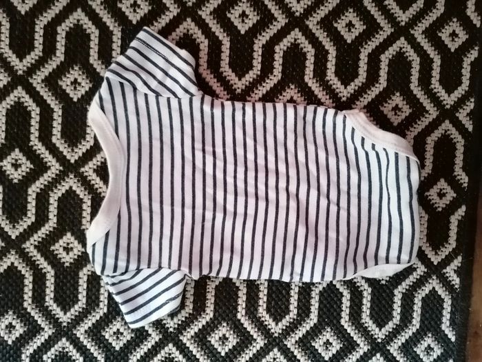 Bodie rayé noir et blanc avec des petites têtes de Mickey. Très bon état, taille 0/1 mois