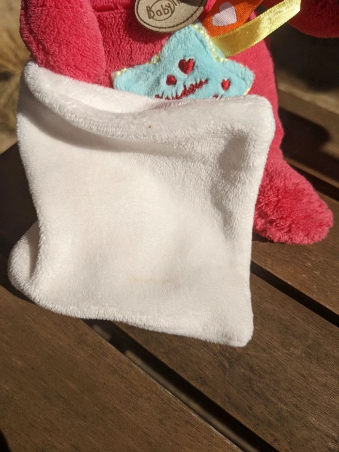 Doudou de 22cm, une petite tâche sur la partie blanche