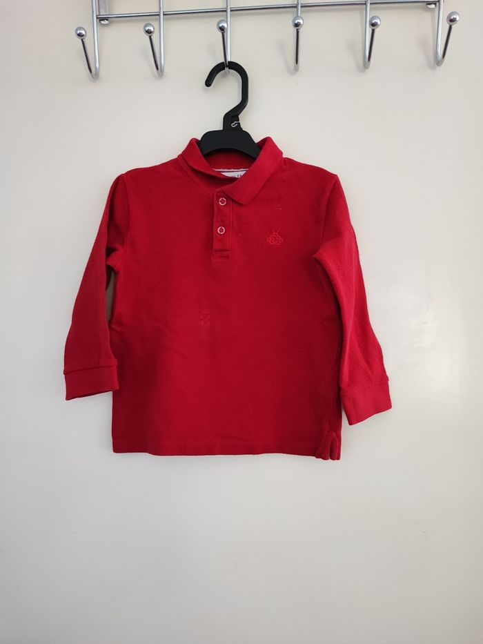 Beau Polo garçon Col boutonné Manches longues Taille 2/3 ans Coloris rouge