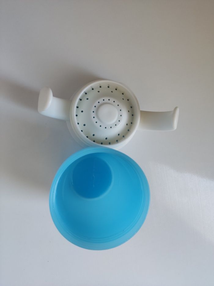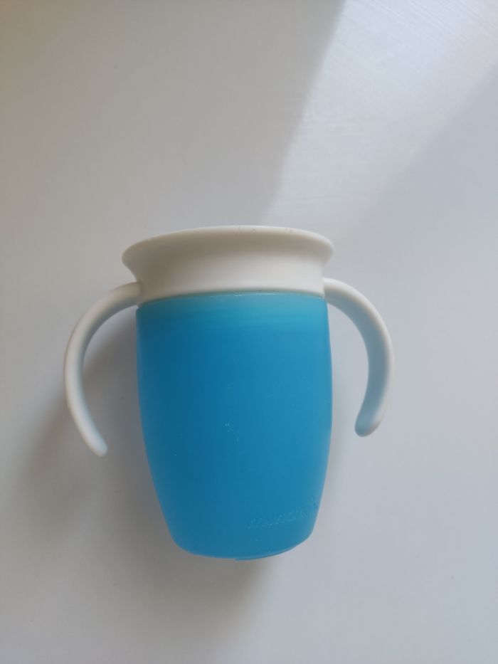 Timbale à sucés idéal pour permettre à bébé de boire seul sans se mouiller. En très bon état quasi neuf