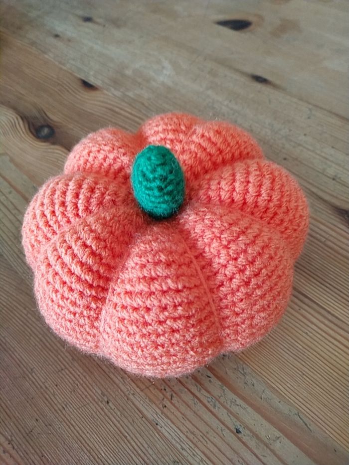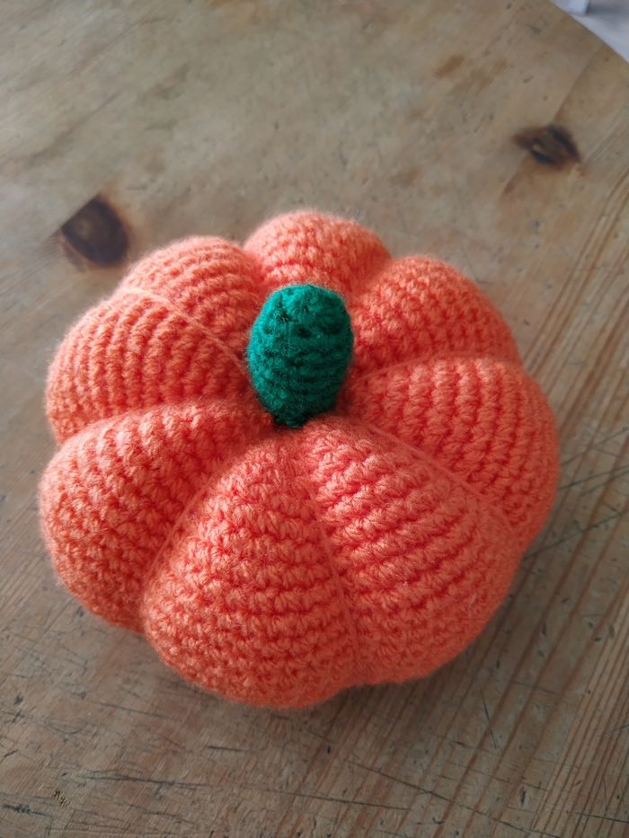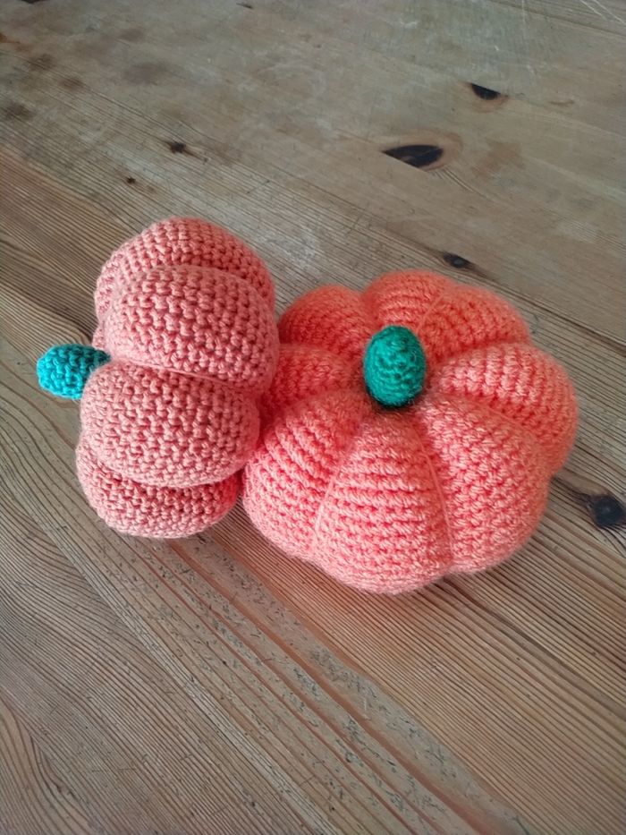 Citrouilles réalisées au crochet, laine acrylique et coton, pour décoration