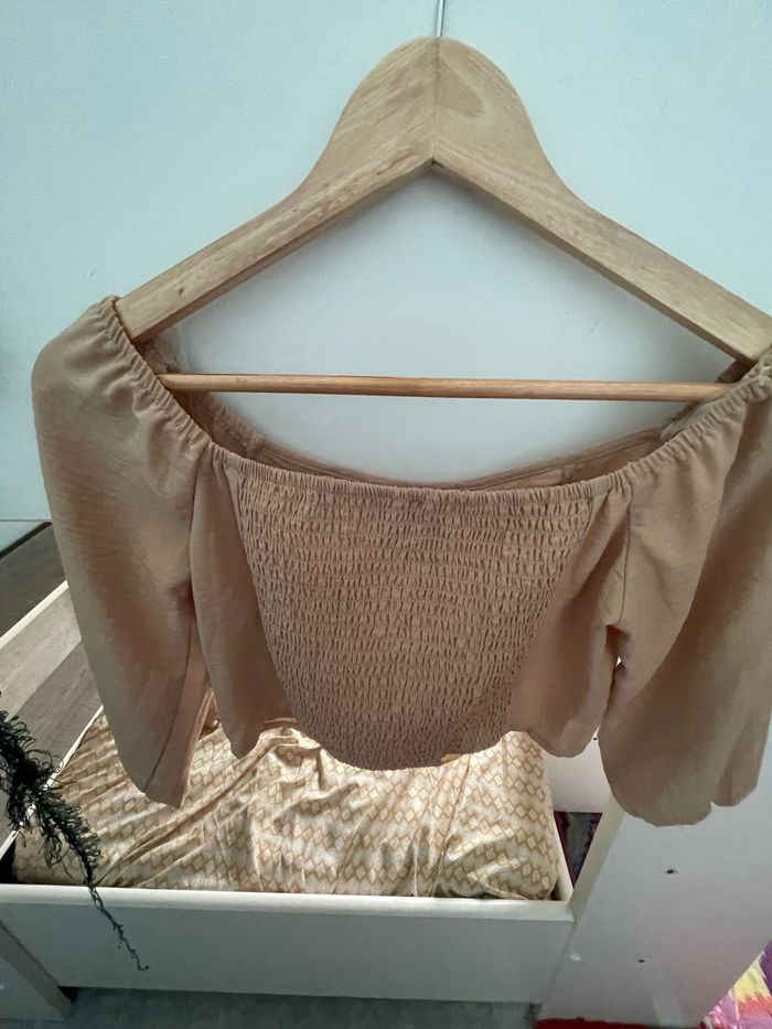 C’est un teeshirt un peu crop top marron très agréable a portée