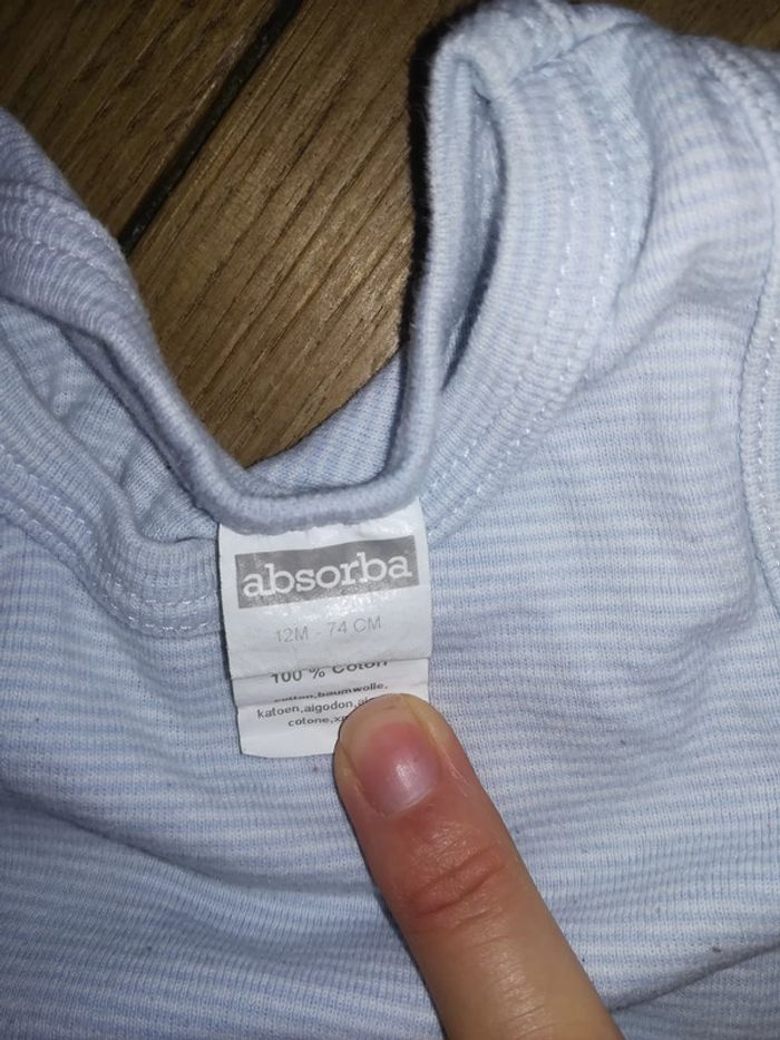 Bonjour! Je vend ce body rayé sans manches Absorba taille 12 Mois à 1€. D'autres vêtements garçon, de la naissance au 18 mois vont être ajoutés prochainement. N'hésitez pas si vous avez des questions. À bientôt !