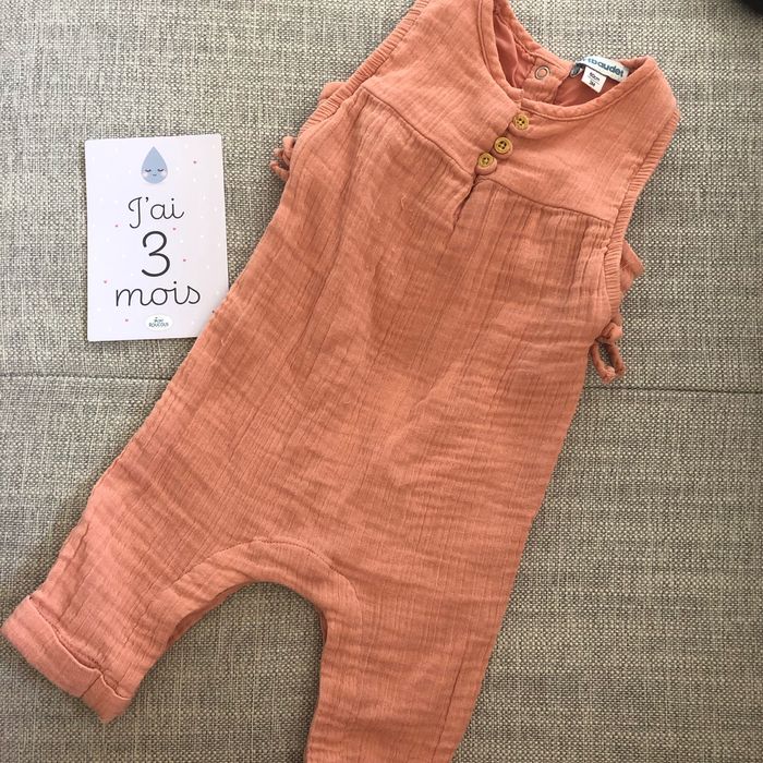 Combinaison rose poudré en gaz coton en taille 3 mois de chez Vertbaudet