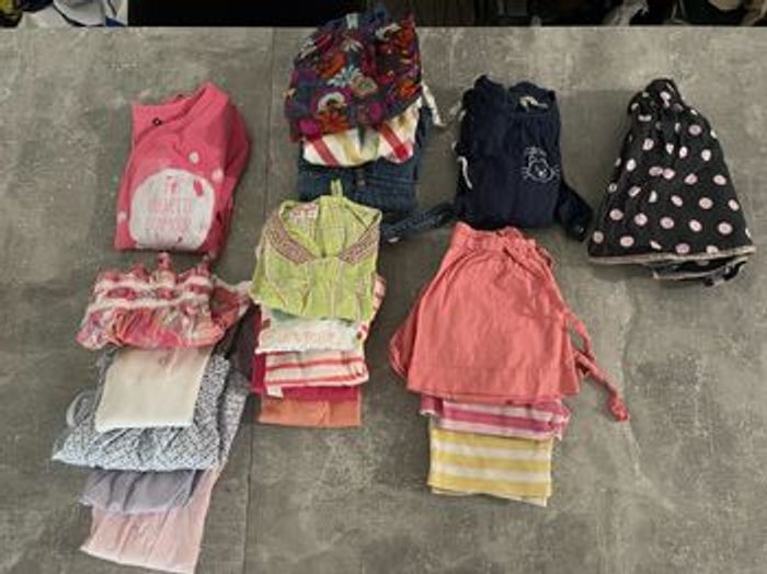 3 shorts 5 tee-shirts 5 débardeurs 1 pyjama fin 1 jupe 3 robes 1 salopette short
