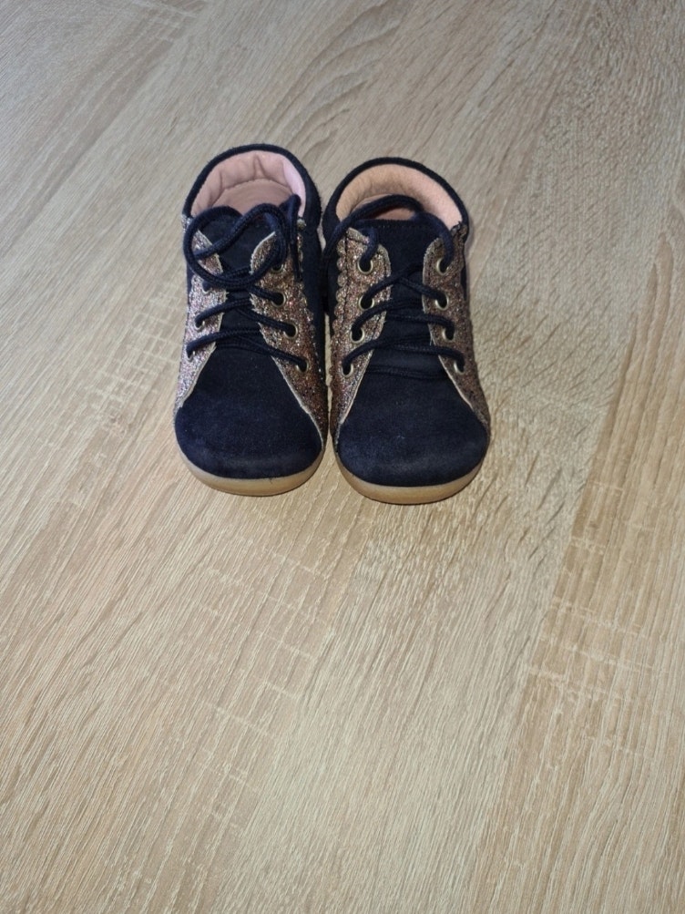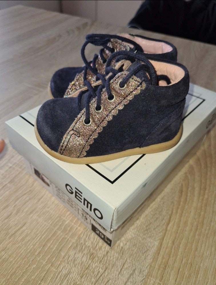 Jolie Chaussure pour petite fille bleu marine avec détails pailleté acheté chez gemo en excellent état porté que 2 fois. Photo supplémentaires si besoin. Taille 19