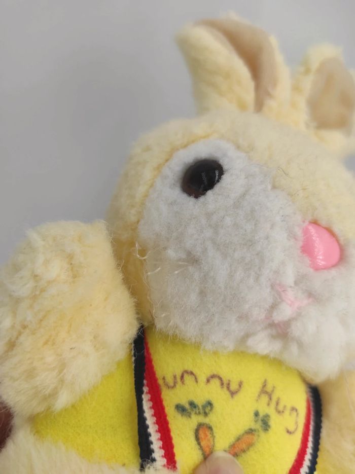 🐰Doudou Peluche Vintage Lapin Jaune Et Blanc avec bretelles et inscription Bunny Hug Dimensions : 25 cm Années : 80'-90' ✨ Bon état. Les moustaches du côté gauches sont tortillées. Mots clés : Peluche vintage casimir années 80 90 00 70 70' 80' 90' 00' Doudou Tomy 2002 80s 90s 00s 70s toile parachute poupée chiffon Fisher Price puffalump ours lion chat souris lapin #peluchelapinjaune #peluchelapinjaunevintage #lapinjaunevintage #lapinbunnyhug #bunnyhug #doudoulapinjaunevintage