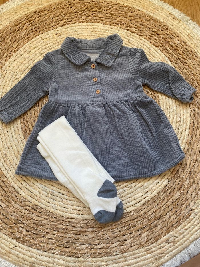 Robe en velours côtelé bleu avec collants assortis Primark, 1/3 mois ❌très bon état (collant neufs)