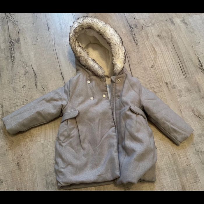 Manteau fille taille 23 marque obaibi. Gris clair avec légèrement des paillettes