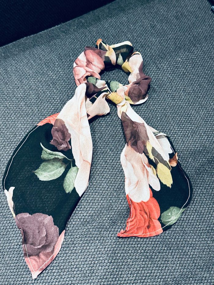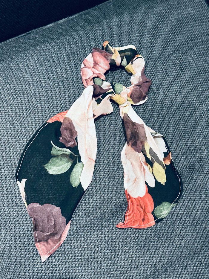Chouchou foulchie  à motifs fleuris fond noir - photo numéro 1