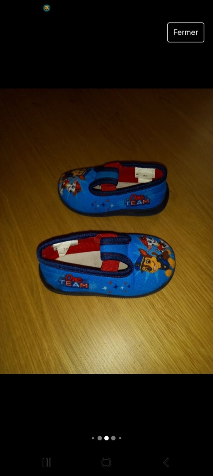 👟 Paire de Pantoufles / Chaussons Paw Patrol avec élastique qui permet de maintenir correctement le pied et semelles dures ➡️ Pointure 24 ➡️ En très bon état