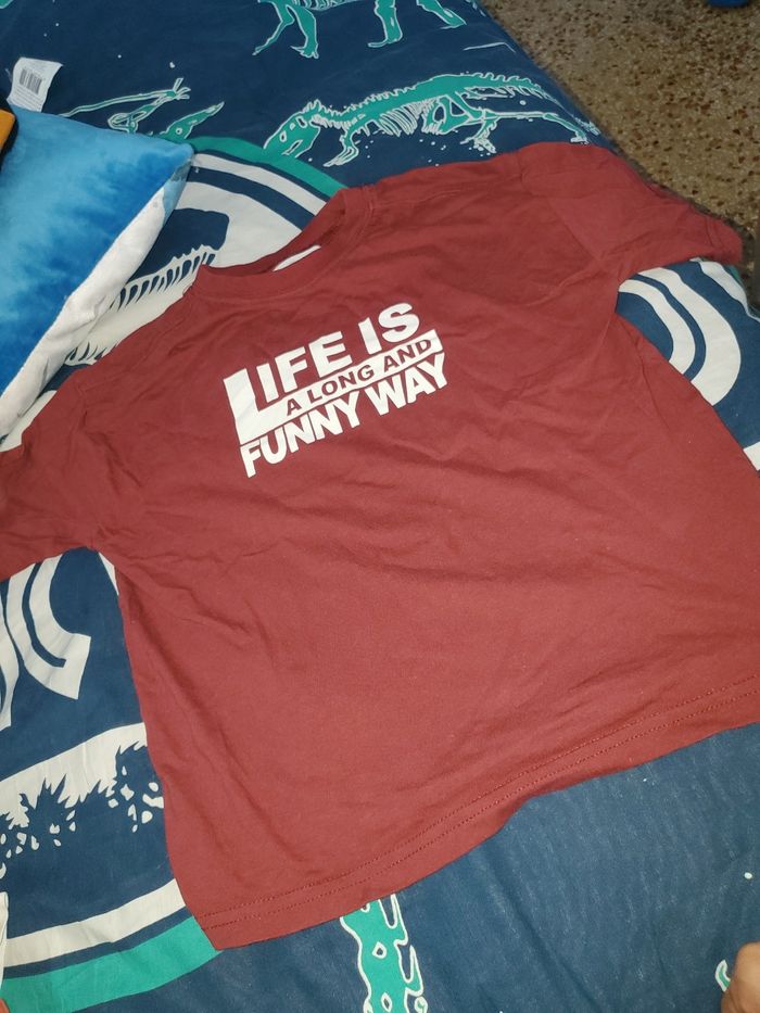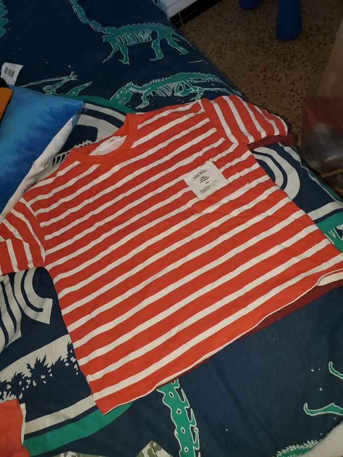 3 t-shirt le orange et bordeau sont de taille 6 abs 116cm et le beige et de taille 110cm 4/5 ans Pratiquement jamais mis tshir