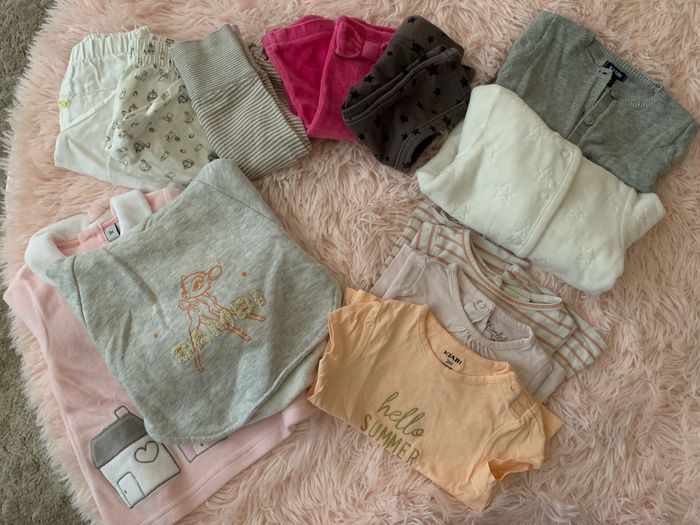 Bonjour 👋🏻 Je vend un lot de vêtements bébé fille en 3 mois, en très bon état ! ☺️ Le Lot comprend : - 11 pantalons / legging - 11 tee-shirts (4 manches courtes et 7 manches longues) - 1 combinaison longue - 1 robe en jeans - 1 robe blanche - 2 gilets - 2 sweat-shirt Le Lot comprend différentes marques : Kiabi Tape à l’œil - Orchestra - Verbaudet… N’hésitez pas à me contacter pour plus de renseignements ! ☺️
