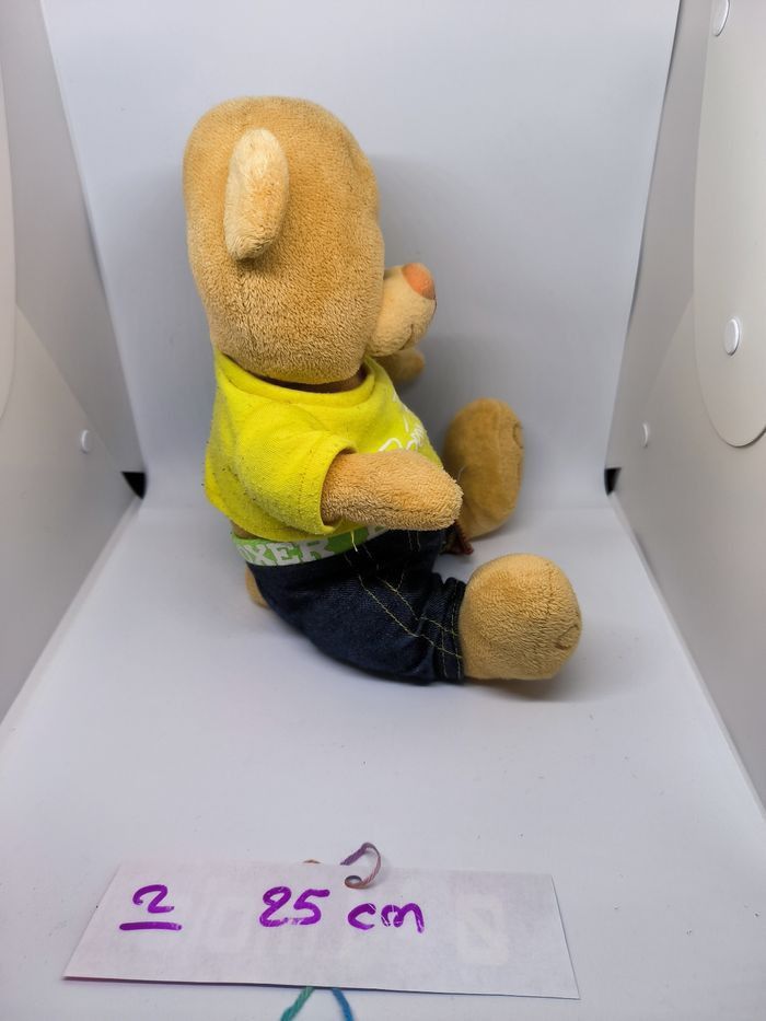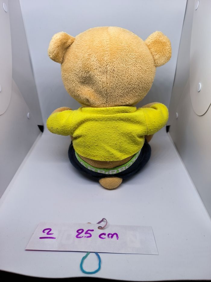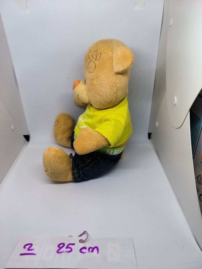 Peluche ourson habillé Jaune et bleu Quelques tâches Environ 25 cm