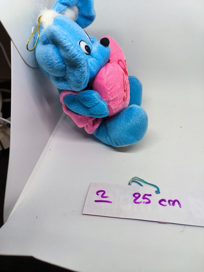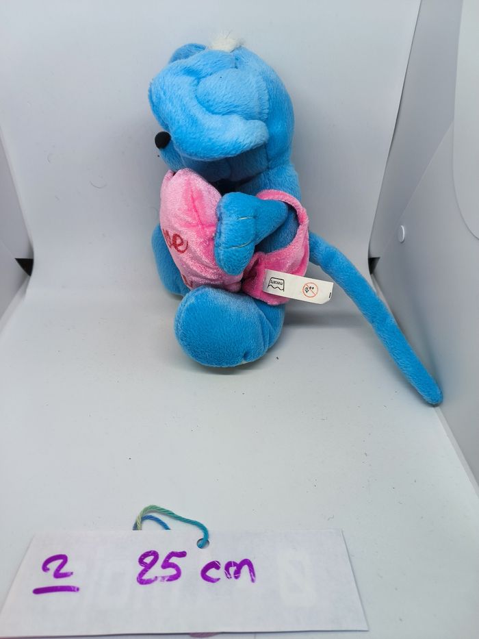 Peluche souris I Love You Bleu et rose Environ 25 cm