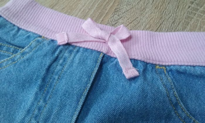 Petit jean à fleurs brodées, taille élastiquée, 74 cm