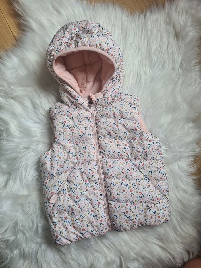 Veste sans manches réversible D'un côté rose pale L'autre côté blanc fleurie Avec poches 12/18mois 86cm