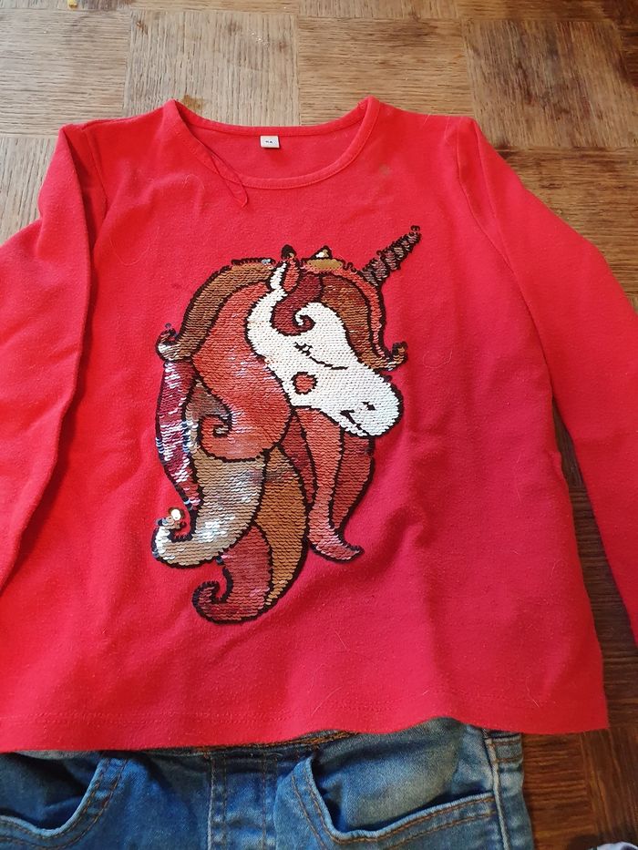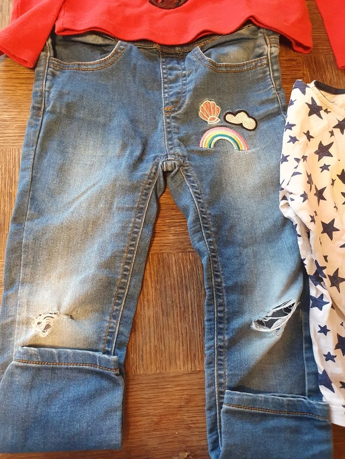 Lot 6 ans 1 pull 1 t-shirt ML 1 jeans troué ( il a été acheté comme ça ce n'est pas de l'usure)