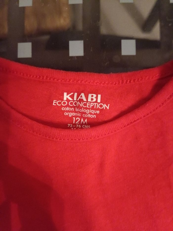 Tee shirt manches longues rouge garçon, en très bon état,taille 12 mois . Marque Kiabi.