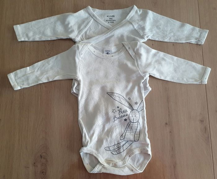 Lot de 2 bodys manche longues Taille 6 mois Marque "petit bateau" et "kiabi" Bon état