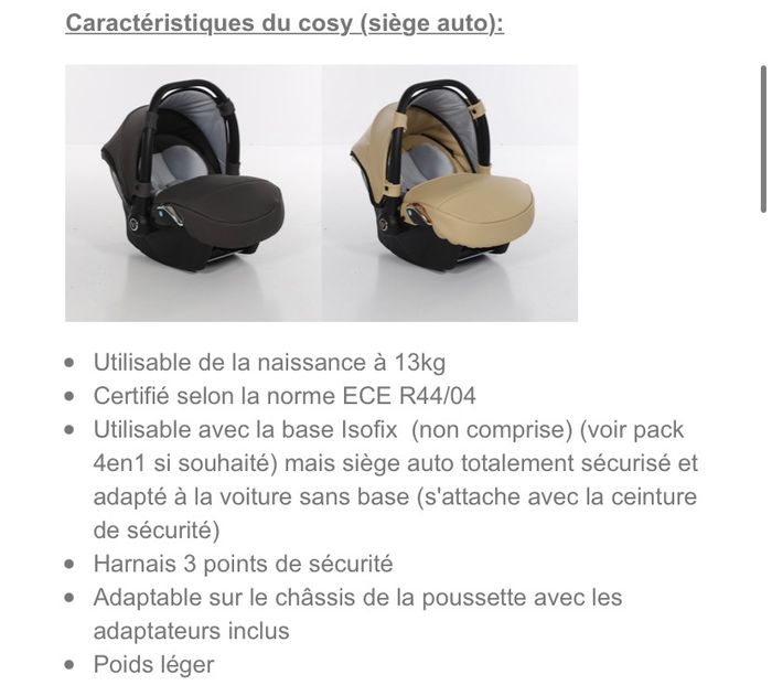 Poussette trio junama avec cosy et nacelle complètement neuf châssis et assise un peut plus abimer mes en très bon état peut sac vendu avec