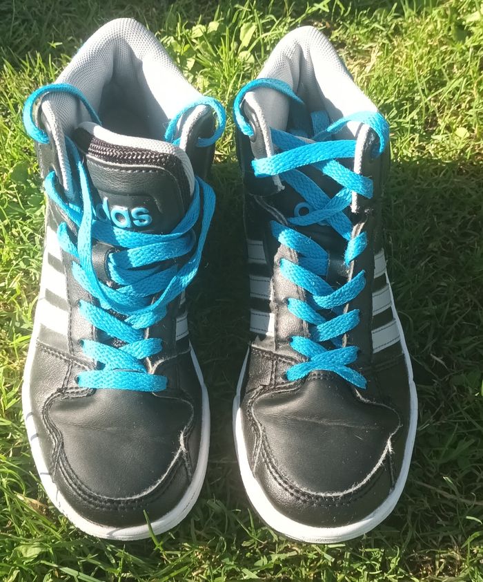 Bonjour , Très belle basket adidas en bon état général elle ne sont en aucun cas troué ou arracher juste 2 petit défaut qui ne gêne en rien au portée Usure au talon en dessous et 1 lassé légèrement abîmé
