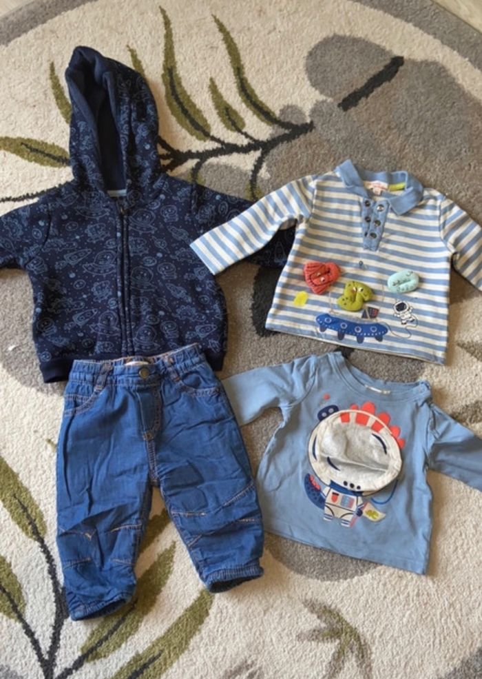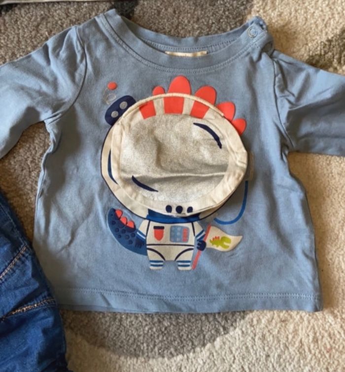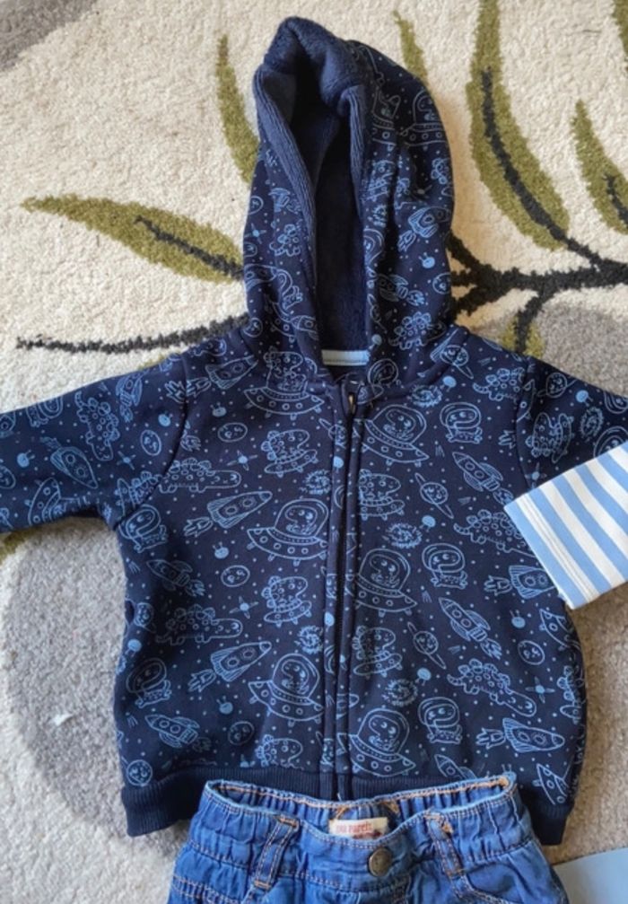 Ensemble DPAM Taille 6 mois TBE 2 tee shirt ML 1 jeans 1 veste a capuche