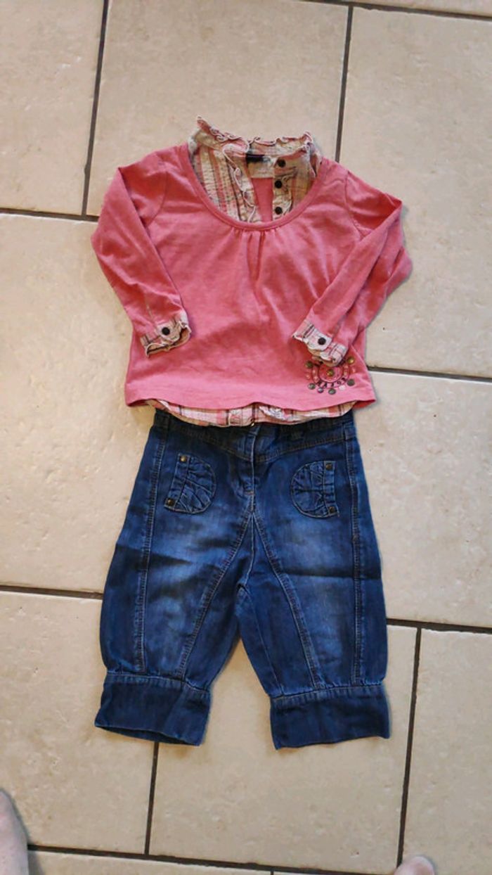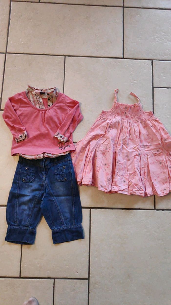 Pantacourt verbaudet Jean 2 ans tbe Haut sergent major 2 ans tbe Robe Okaidi 23 mois smookee, comme neuve