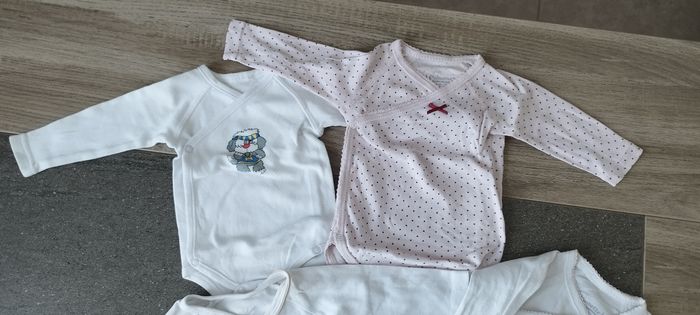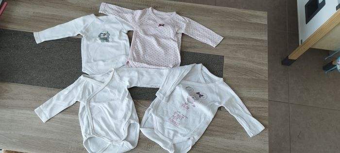 Bodies manches longues, boutonnage sur le devant. Deux de marque pommette Deux autres sans marque