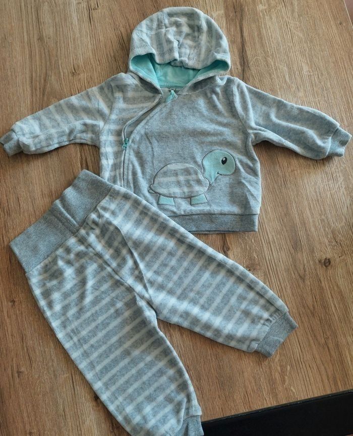 Ensemble jogging en coton Couleur gris clair et turquoise Taille 9mois